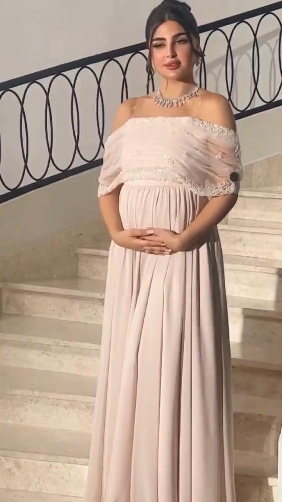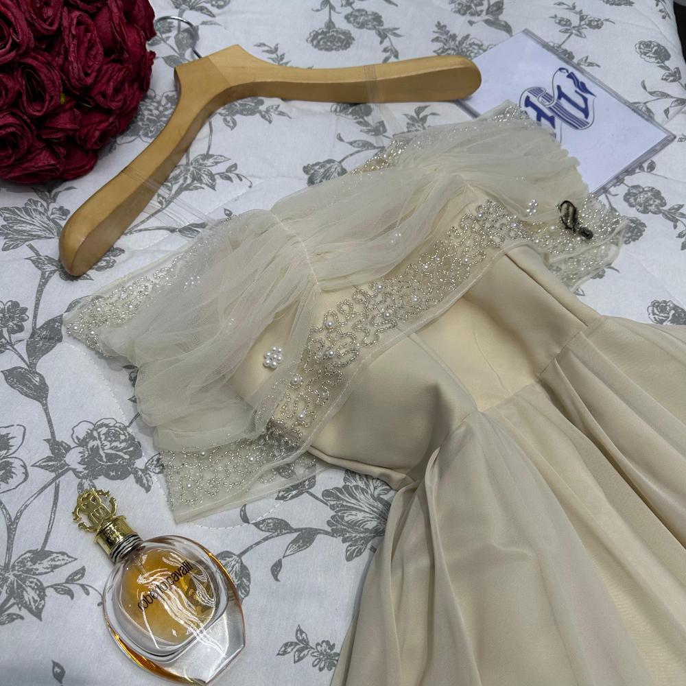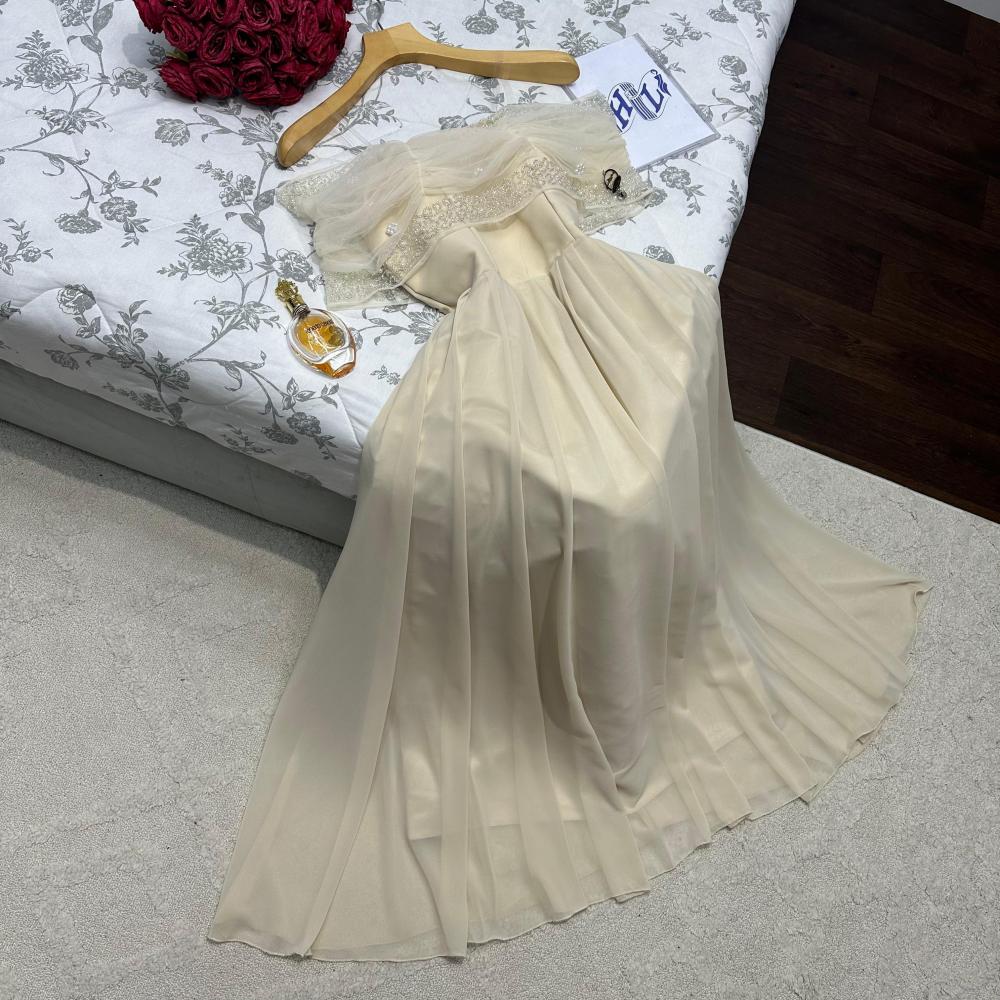 فستان سهرة حمل خامة شيفون مع تطربز يدوي